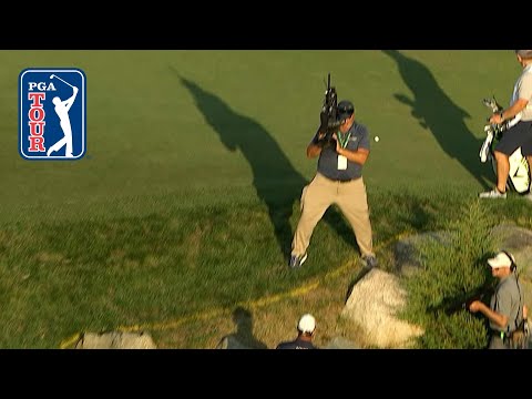 Cameraman dodges golf bal...